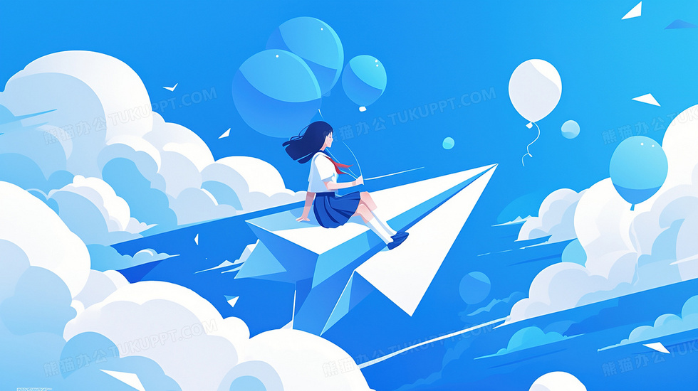 本作品内容为毕业季坐在纸飞机上的少女插画, 格式为 jpg, 大小2 MB, 图片尺寸为2912 x 1632, 源文件无水印, 欢迎使用熊猫办公。 如认为平台内容涉嫌侵权,可通过邮件:tousu@tukuppt.com提出书面通知,我们将及时处理。