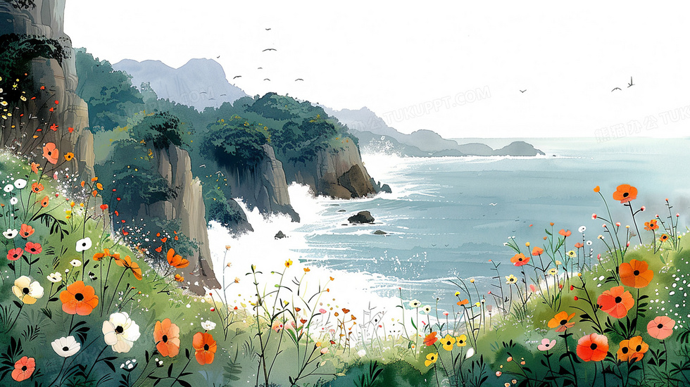 本作品内容为手绘悬崖海浪海边风景插画, 格式为 jpg, 大小4 MB, 图片尺寸为2912 x 1632, 源文件无水印, 欢迎使用熊猫办公。 如认为平台内容涉嫌侵权,可通过邮件:tousu@tukuppt.com提出书面通知,我们将及时处理。