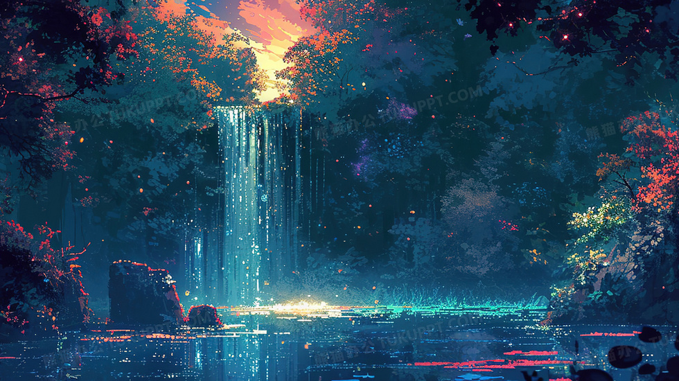 本作品内容为游戏像素风夜晚树林唯美风景插画, 格式为 jpg, 大小4 MB, 图片尺寸为2912 x 1632, 源文件无水印, 欢迎使用熊猫办公。 如认为平台内容涉嫌侵权,可通过邮件:tousu@tukuppt.com提出书面通知,我们将及时处理。
