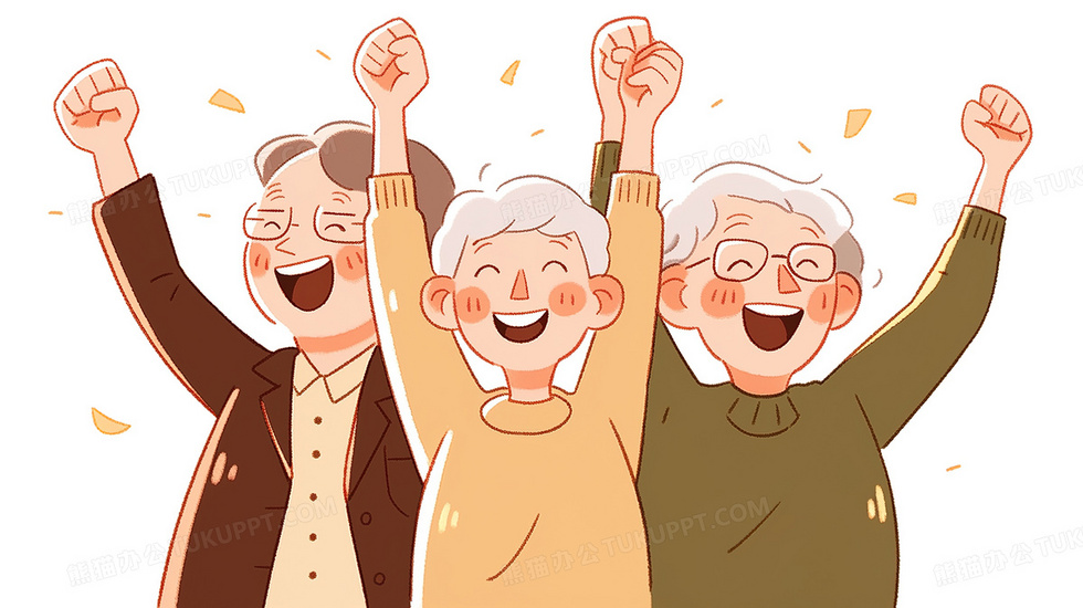 本作品内容为举手欢呼的老人们插画, 格式为 jpg, 大小2 MB, 图片尺寸为2912 x 1632, 源文件无水印, 欢迎使用熊猫办公。 如认为平台内容涉嫌侵权,可通过邮件:tousu@tukuppt.com提出书面通知,我们将及时处理。