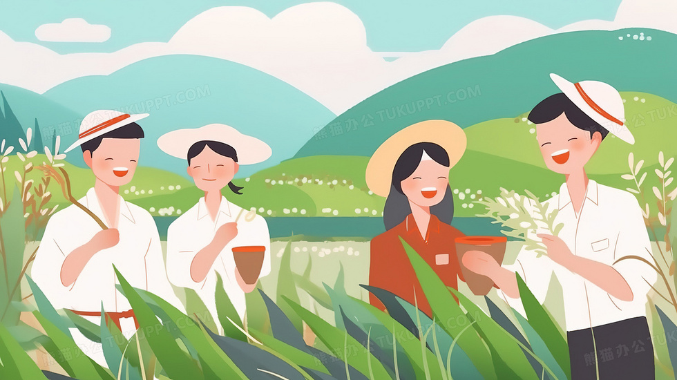 本作品内容为村庄稻田里丰收的农民插画, 格式为 jpg, 大小2 MB, 图片尺寸为2912 x 1632, 源文件无水印, 欢迎使用熊猫办公。 如认为平台内容涉嫌侵权,可通过邮件:tousu@tukuppt.com提出书面通知,我们将及时处理。