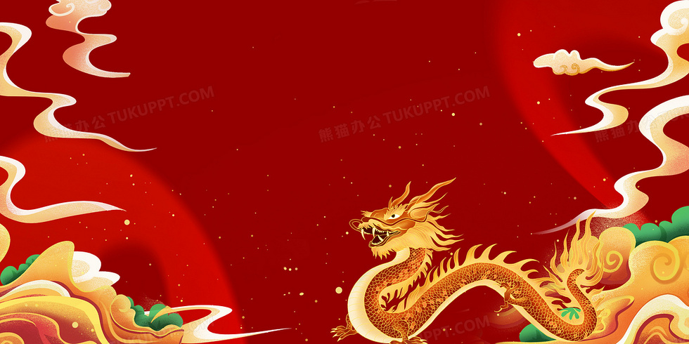 本作品内容为红色新年喜庆龙卡通背景, 格式为 psd, 大小147 MB, 图片尺寸为4722 x 2361, 作品中背景图片无需修改, 源文件无水印,可以直接使用, 欢迎使用熊猫办公。 如认为平台内容涉嫌侵权,可通过邮件:tousu@tukuppt.com提出书面通知,我们将及时处理。