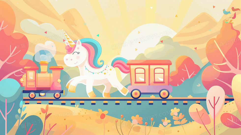 本作品内容为儿童节独角兽小火车玩具插画, 格式为 jpg, 大小2 MB, 图片尺寸为2912 x 1632, 源文件无水印, 欢迎使用熊猫办公。 如认为平台内容涉嫌侵权,可通过邮件:tousu@tukuppt.com提出书面通知,我们将及时处理。