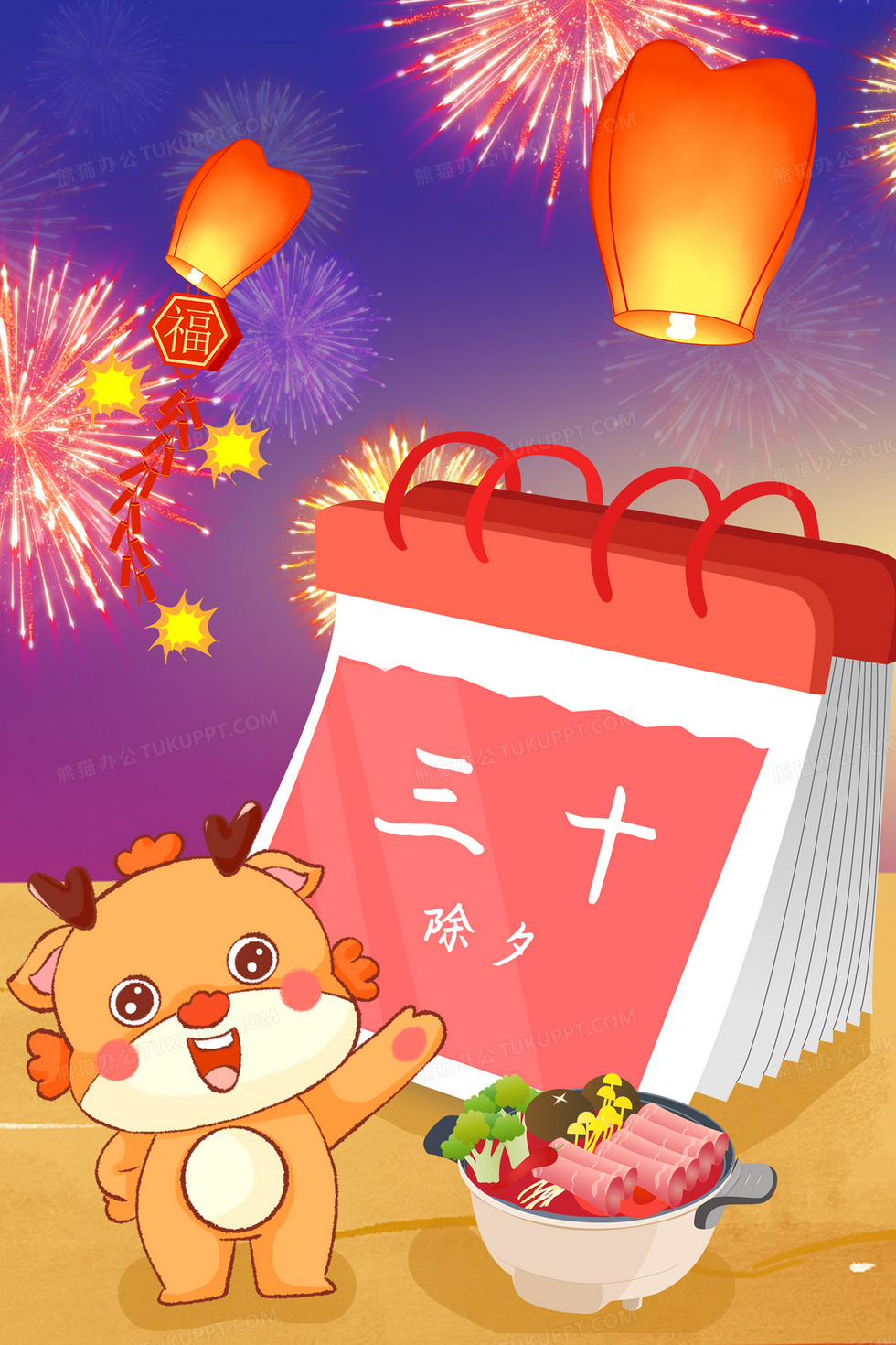 本作品内容为新年大年三十小龙送福到创意日历插画, 格式为 psd, 大小121 MB, 请使用软件PhotoShop(CC)打开, 源文件无水印, 欢迎使用熊猫办公。 如认为平台内容涉嫌侵权,可通过邮件:tousu@tukuppt.com提出书面通知,我们将及时处理。