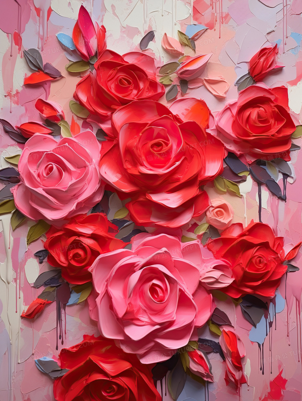 本作品内容为浪漫粉色手绘油画玫瑰花情人节插画, 格式为 jpg, 大小4 MB, 图片尺寸为1856 x 2464, 源文件无水印, 欢迎使用熊猫办公。 如认为平台内容涉嫌侵权,可通过邮件:tousu@tukuppt.com提出书面通知,我们将及时处理。