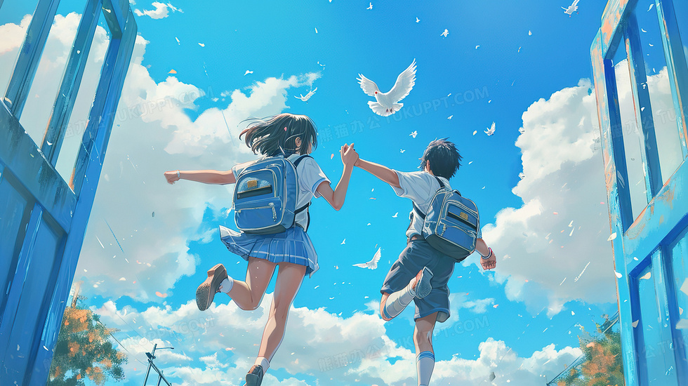 本作品内容为蓝色致青春毕业季迎接新学期插画, 格式为 jpg, 大小4 MB, 图片尺寸为2912 x 1632, 源文件无水印, 欢迎使用熊猫办公。 如认为平台内容涉嫌侵权,可通过邮件:tousu@tukuppt.com提出书面通知,我们将及时处理。
