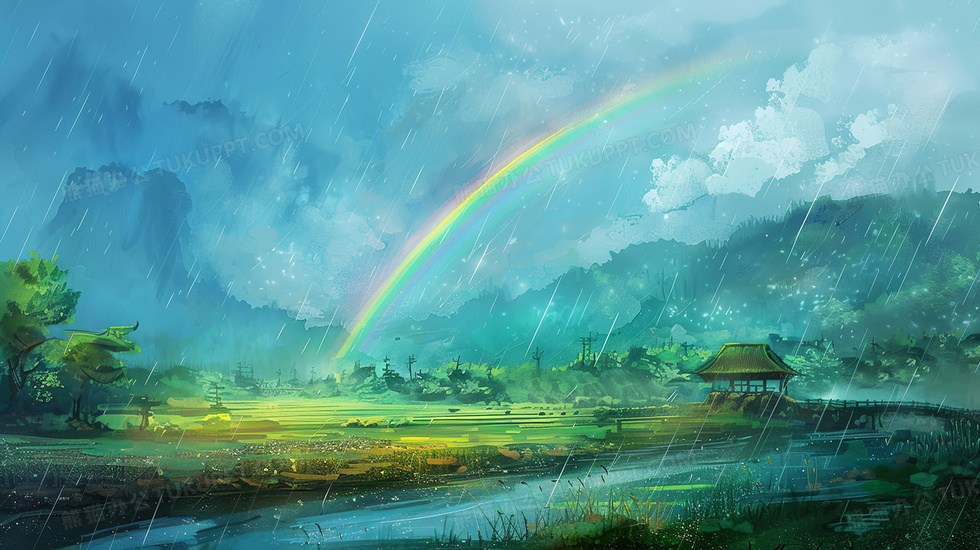 本作品内容为夏天雨后彩虹风景插画, 格式为 jpg, 大小4 MB, 图片尺寸为2912 x 1632, 源文件无水印, 欢迎使用熊猫办公。 如认为平台内容涉嫌侵权,可通过邮件:tousu@tukuppt.com提出书面通知,我们将及时处理。