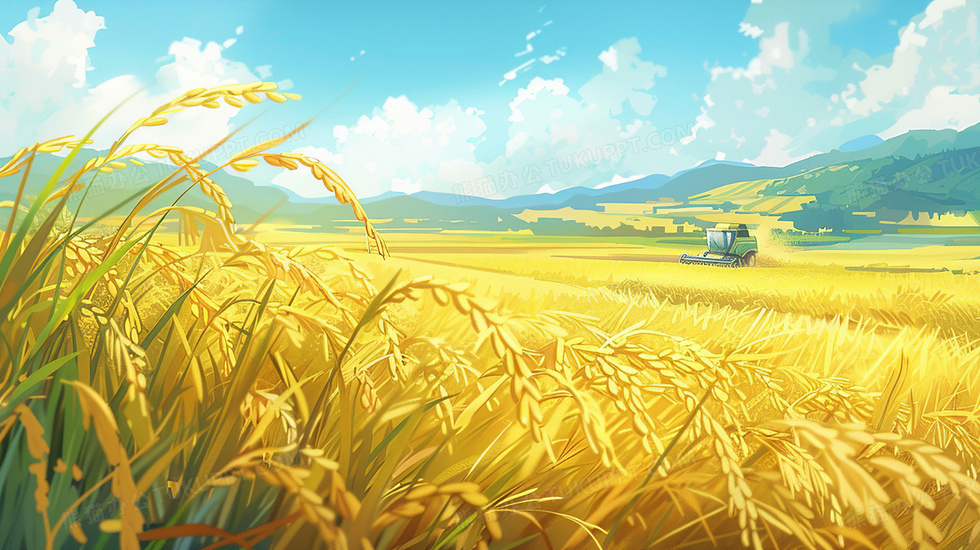 本作品内容为乡村田园收割机收割水稻插画, 格式为 jpg, 大小4 MB, 图片尺寸为2912 x 1632, 源文件无水印, 欢迎使用熊猫办公。 如认为平台内容涉嫌侵权,可通过邮件:tousu@tukuppt.com提出书面通知,我们将及时处理。