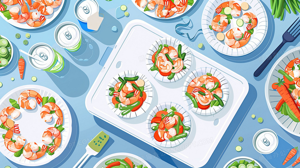 本作品内容为餐桌美食基围虾果蔬插画, 格式为 jpg, 大小3 MB, 图片尺寸为2912 x 1632, 源文件无水印, 欢迎使用熊猫办公。 如认为平台内容涉嫌侵权,可通过邮件:tousu@tukuppt.com提出书面通知,我们将及时处理。