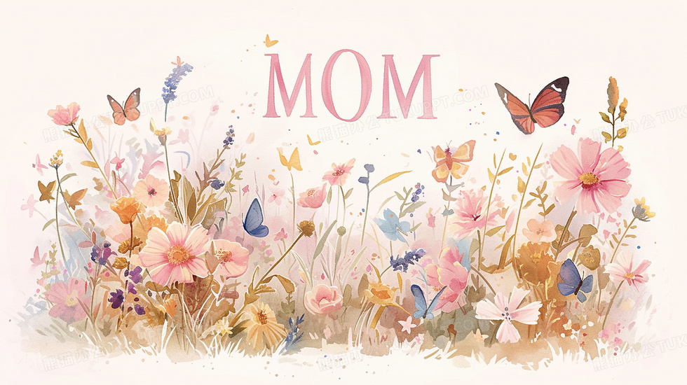 首页 > 插画 > 科技艺术 > 水彩手绘 > 母亲节水彩花卉艺术字插画