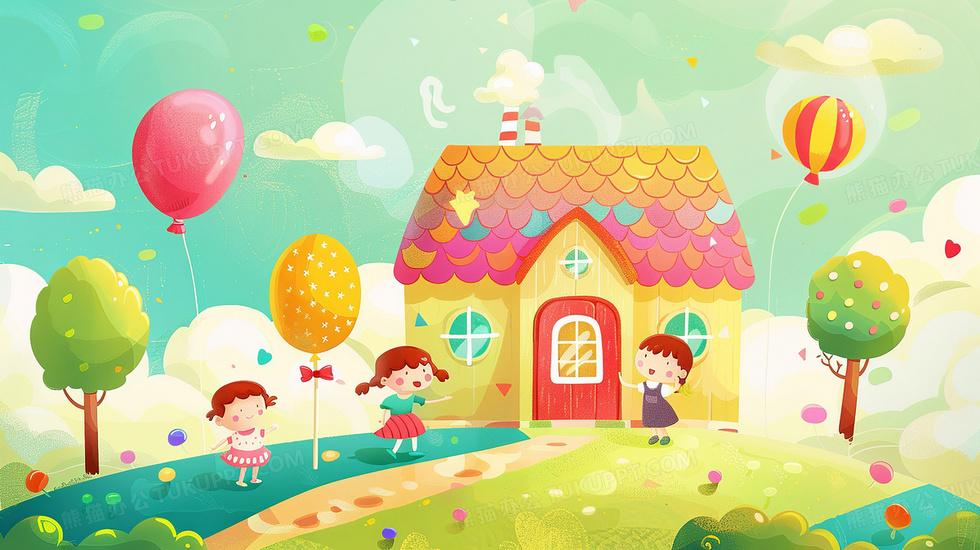 本作品内容为儿童节几个孩子在糖果屋前玩耍卡通插画, 格式为 jpg, 大小3 MB, 图片尺寸为2912 x 1632, 源文件无水印, 欢迎使用熊猫办公。 如认为平台内容涉嫌侵权,可通过邮件:tousu@tukuppt.com提出书面通知,我们将及时处理。