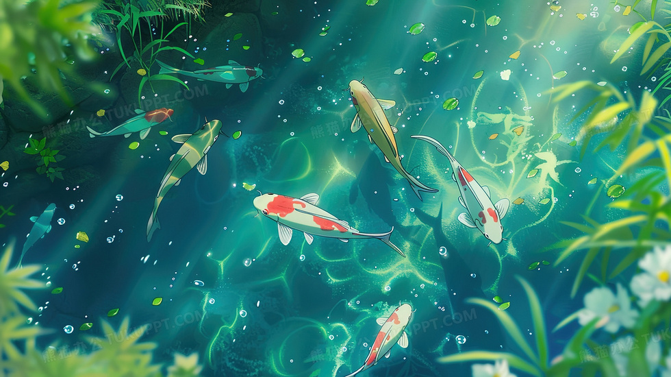 本作品内容为夏季水池中的鱼插画, 格式为 jpg, 大小3 MB, 图片尺寸为2912 x 1632, 源文件无水印, 欢迎使用熊猫办公。 如认为平台内容涉嫌侵权,可通过邮件:tousu@tukuppt.com提出书面通知,我们将及时处理。