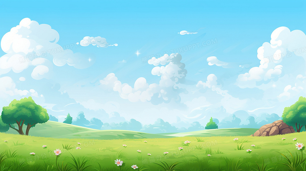 本作品内容为春天绿色草地风景卡通插画大自然背景, 格式为 jpg, 大小16 MB, 图片尺寸为8736 x 4896, 作品中背景图片无需修改, 源文件无水印,可以直接使用, 欢迎使用熊猫办公。 如认为平台内容涉嫌侵权,可通过邮件:tousu@tukuppt.com提出书面通知,我们将及时处理。