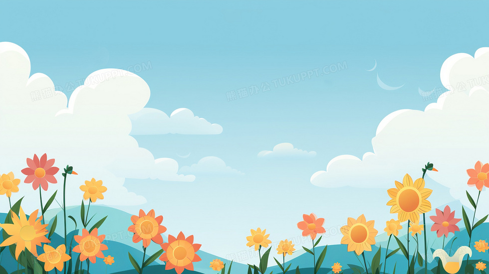 本作品内容为卡通清新花卉背景, 格式为 jpg, 大小2 MB, 图片尺寸为2912 x 1632, 作品中背景图片无需修改, 源文件无水印,可以直接使用, 欢迎使用熊猫办公。 如认为平台内容涉嫌侵权,可通过邮件:tousu@tukuppt.com提出书面通知,我们将及时处理。