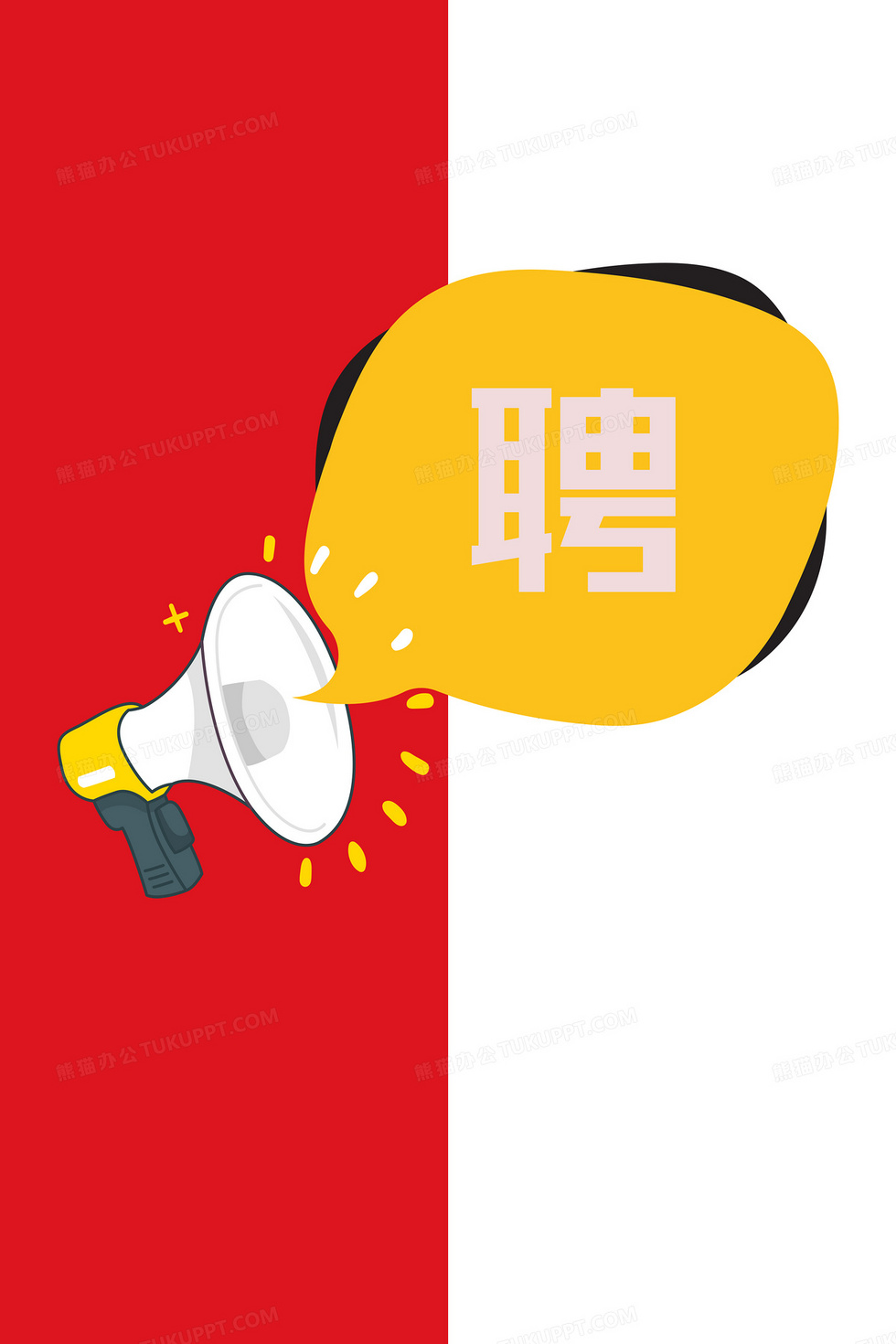 本作品内容为简约创意喇叭招聘背景, 格式为 psd, 大小2 MB, 图片尺寸为3543 x 5315, 作品中背景图片无需修改, 源文件无水印,可以直接使用, 欢迎使用熊猫办公。 如认为平台内容涉嫌侵权,可通过邮件:tousu@tukuppt.com提出书面通知,我们将及时处理。