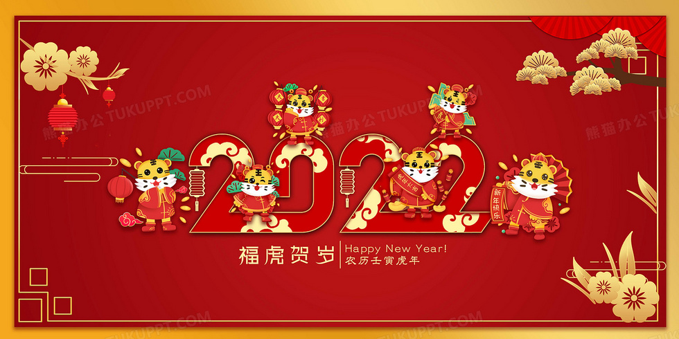 本作品内容为红金的虎年2022生肖创意插画背景, 格式为 psd, 大小19 MB, 图片尺寸为4724 x 2362, 作品中背景图片无需修改, 源文件无水印,可以直接使用, 欢迎使用熊猫办公。 如认为平台内容涉嫌侵权,可通过邮件:tousu@tukuppt.com提出书面通知,我们将及时处理。