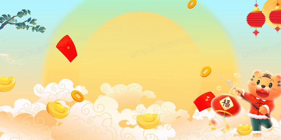本作品内容为国潮新年老虎插画背景, 格式为 psd, 大小17 MB, 图片尺寸为4724 x 2362, 作品中背景图片无需修改, 源文件无水印,可以直接使用, 欢迎使用熊猫办公。 如认为平台内容涉嫌侵权,可通过邮件:tousu@tukuppt.com提出书面通知,我们将及时处理。