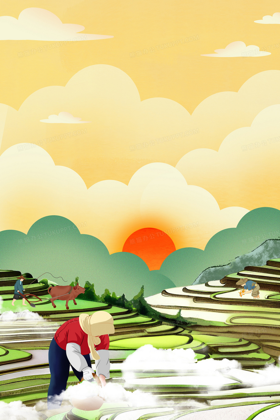 本作品内容为二十四节气芒种插画风农民播种农田背景, 格式为 psd, 大小85 MB, 图片尺寸为3543 x 5315, 作品中背景图片无需修改, 源文件无水印,可以直接使用, 欢迎使用熊猫办公。 如认为平台内容涉嫌侵权,可通过邮件:tousu@tukuppt.com提出书面通知,我们将及时处理。
