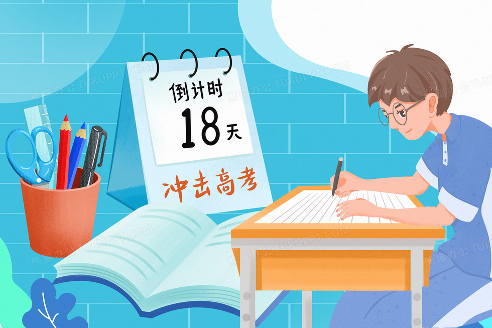 本作品内容为高考加油冲刺倒计时学生插画, 格式为 psd, 大小43 MB, 请使用软件PhotoShop(CS6)打开, 源文件无水印, 欢迎使用熊猫办公。 如认为平台内容涉嫌侵权,可通过邮件:tousu@tukuppt.com提出书面通知,我们将及时处理。