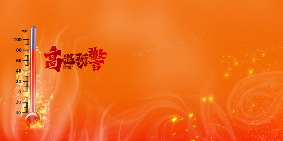 本作品内容为橙色高温预警背景, 格式为 psd, 大小50 MB, 图片尺寸为4724 x 2362, 作品中背景图片无需修改, 源文件无水印,可以直接使用, 欢迎使用熊猫办公。 如认为平台内容涉嫌侵权,可通过邮件:tousu@tukuppt.com提出书面通知,我们将及时处理。