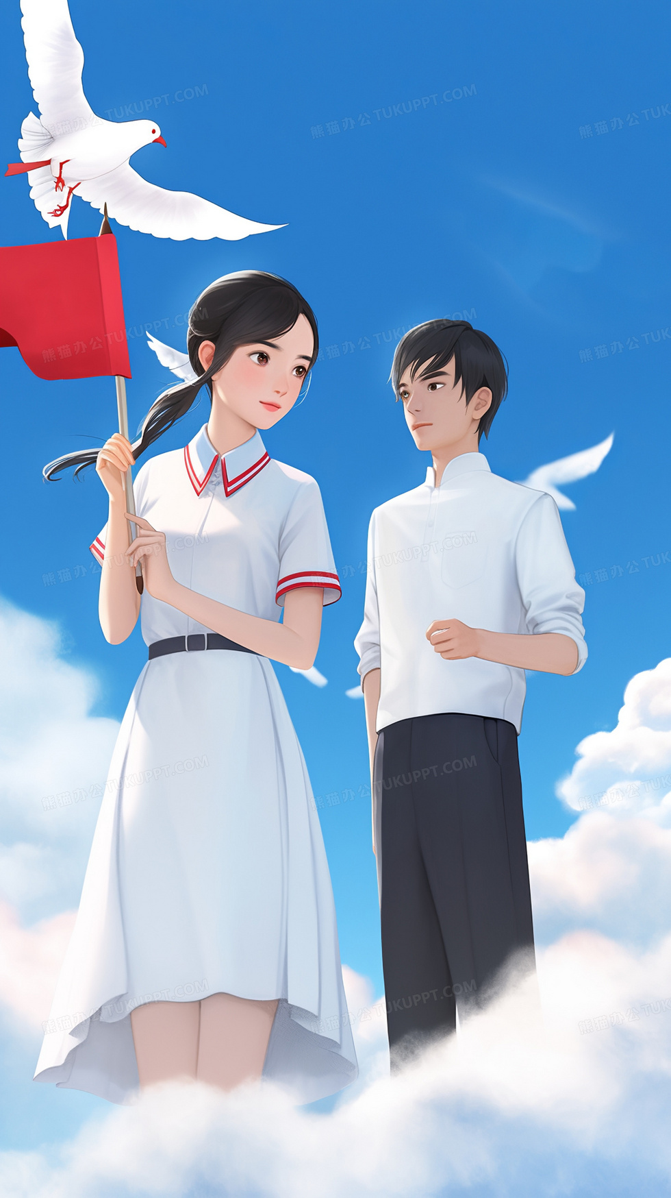 本作品内容为毕业季穿着校服的学生站在蓝天白云下憧憬未来, 格式为 jpg, 大小2 MB, 图片尺寸为1632 x 2912, 源文件无水印, 欢迎使用熊猫办公。 如认为平台内容涉嫌侵权,可通过邮件:tousu@tukuppt.com提出书面通知,我们将及时处理。