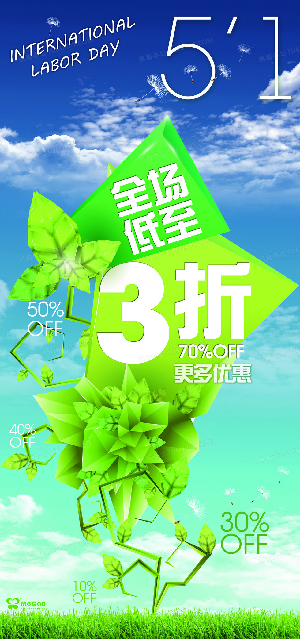 本作品内容为五一促销展板, 格式为 psd, 图片尺寸为2268 x 4819, 作品中背景图片无需修改, 源文件无水印,可以直接使用, 欢迎使用熊猫办公。 如认为平台内容涉嫌侵权,可通过邮件:tousu@tukuppt.com提出书面通知,我们将及时处理。