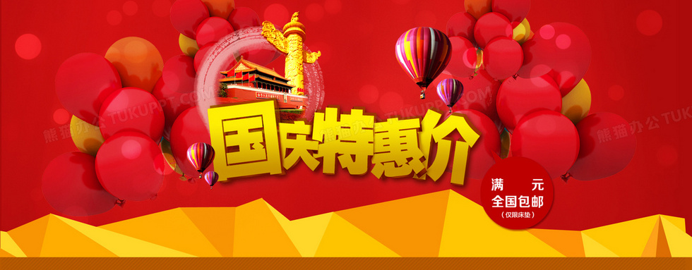 本作品内容为国庆特惠价banner, 格式为 psd, 图片尺寸为1920 x 750, 作品中背景图片无需修改, 源文件无水印,可以直接使用, 欢迎使用熊猫办公。 如认为平台内容涉嫌侵权,可通过邮件:tousu@tukuppt.com提出书面通知,我们将及时处理。