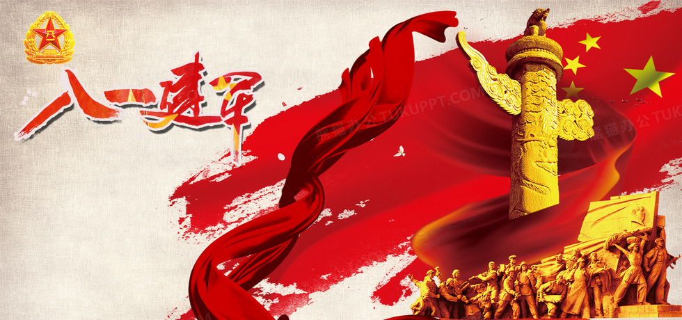 本作品内容为八一建军节背景, 格式为 psd, 图片尺寸为1920 x 900, 作品中背景图片无需修改, 源文件无水印,可以直接使用, 欢迎使用熊猫办公。 如认为平台内容涉嫌侵权,可通过邮件:tousu@tukuppt.com提出书面通知,我们将及时处理。