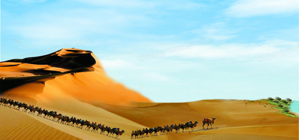 本作品内容为沙漠驼队背景, 格式为 psd, 图片尺寸为1920 x 900, 作品中背景图片无需修改, 源文件无水印,可以直接使用, 欢迎使用熊猫办公。 如认为平台内容涉嫌侵权,可通过邮件:tousu@tukuppt.com提出书面通知,我们将及时处理。