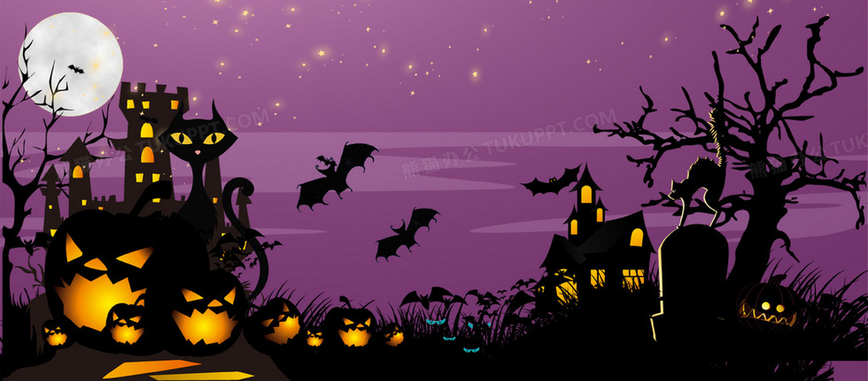 本作品内容为万圣节背景, 格式为 psd, 图片尺寸为1920 x 845, 作品中背景图片无需修改, 源文件无水印,可以直接使用, 欢迎使用熊猫办公。 如认为平台内容涉嫌侵权,可通过邮件:tousu@tukuppt.com提出书面通知,我们将及时处理。