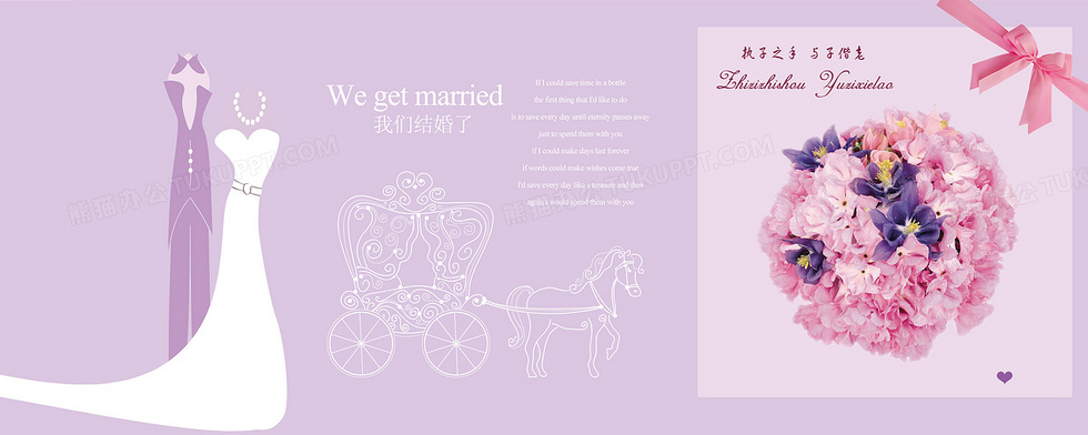本作品内容为蝴蝶结捧花礼服婚礼请柬, 格式为 psd, 图片尺寸为5000 x 2000, 作品中背景图片无需修改, 源文件无水印,可以直接使用, 欢迎使用熊猫办公。 如认为平台内容涉嫌侵权,可通过邮件:tousu@tukuppt.com提出书面通知,我们将及时处理。