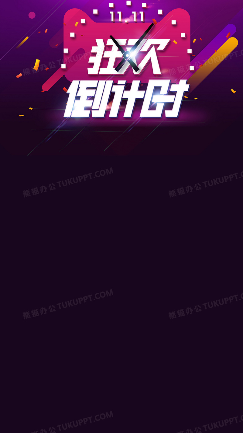 本作品内容为紫色天猫双11狂欢节背景, 格式为 psd, 图片尺寸为1080 x 1920, 作品中背景图片无需修改, 源文件无水印,可以直接使用, 欢迎使用熊猫办公。 如认为平台内容涉嫌侵权,可通过邮件:tousu@tukuppt.com提出书面通知,我们将及时处理。