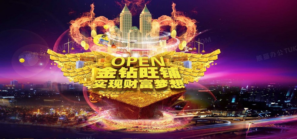 本作品内容为金钻旺铺财富梦想, 格式为 psd, 图片尺寸为1920 x 900, 作品中背景图片无需修改, 源文件无水印,可以直接使用, 欢迎使用熊猫办公。 如认为平台内容涉嫌侵权,可通过邮件:tousu@tukuppt.com提出书面通知,我们将及时处理。
