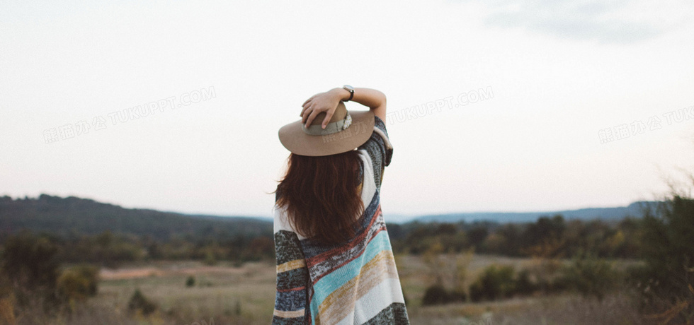 本作品内容为唯美女孩背影, 格式为 jpg, 图片尺寸为1920 x 900, 作品中背景图片无需修改, 源文件无水印,可以直接使用, 欢迎使用熊猫办公。 如认为平台内容涉嫌侵权,可通过邮件:tousu@tukuppt.com提出书面通知,我们将及时处理。