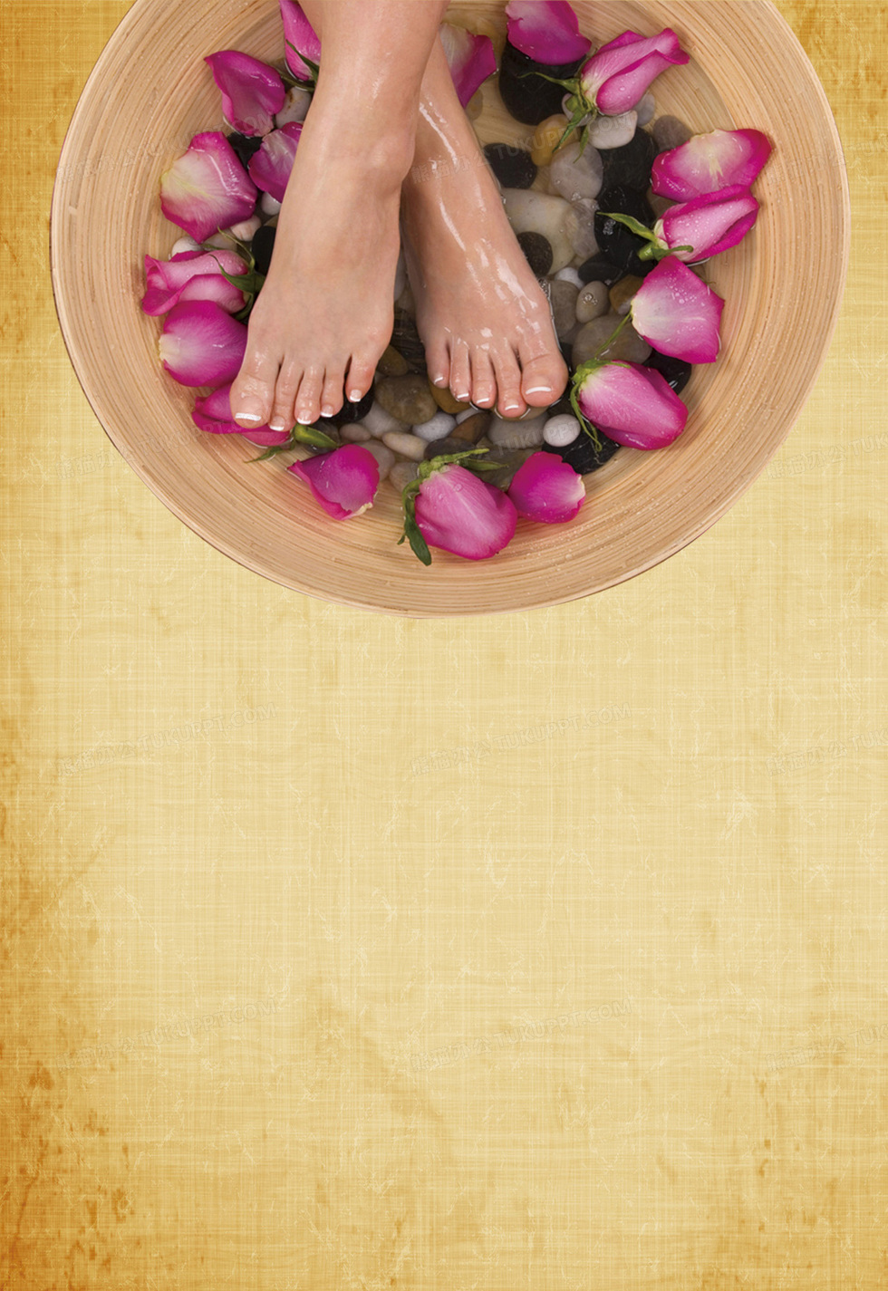 本作品内容为足浴纸质背景, 格式为 psd, 图片尺寸为1375 x 2000, 作品中背景图片无需修改, 源文件无水印,可以直接使用, 欢迎使用熊猫办公。 如认为平台内容涉嫌侵权,可通过邮件:tousu@tukuppt.com提出书面通知,我们将及时处理。