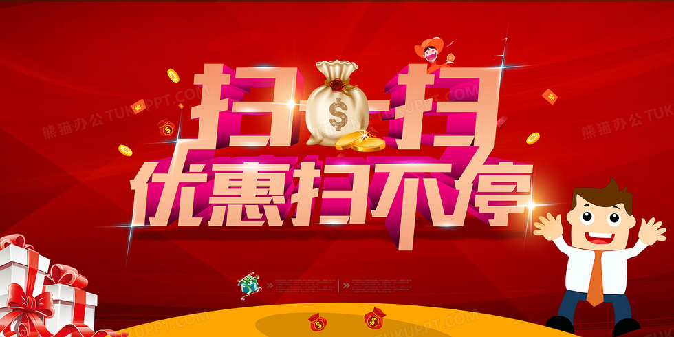 本作品内容为喜庆微信扫一扫优惠扫不停浪漫背景素材, 格式为 psd, 图片尺寸为4016 x 2008, 作品中背景图片无需修改, 源文件无水印,可以直接使用, 欢迎使用熊猫办公。 如认为平台内容涉嫌侵权,可通过邮件:tousu@tukuppt.com提出书面通知,我们将及时处理。