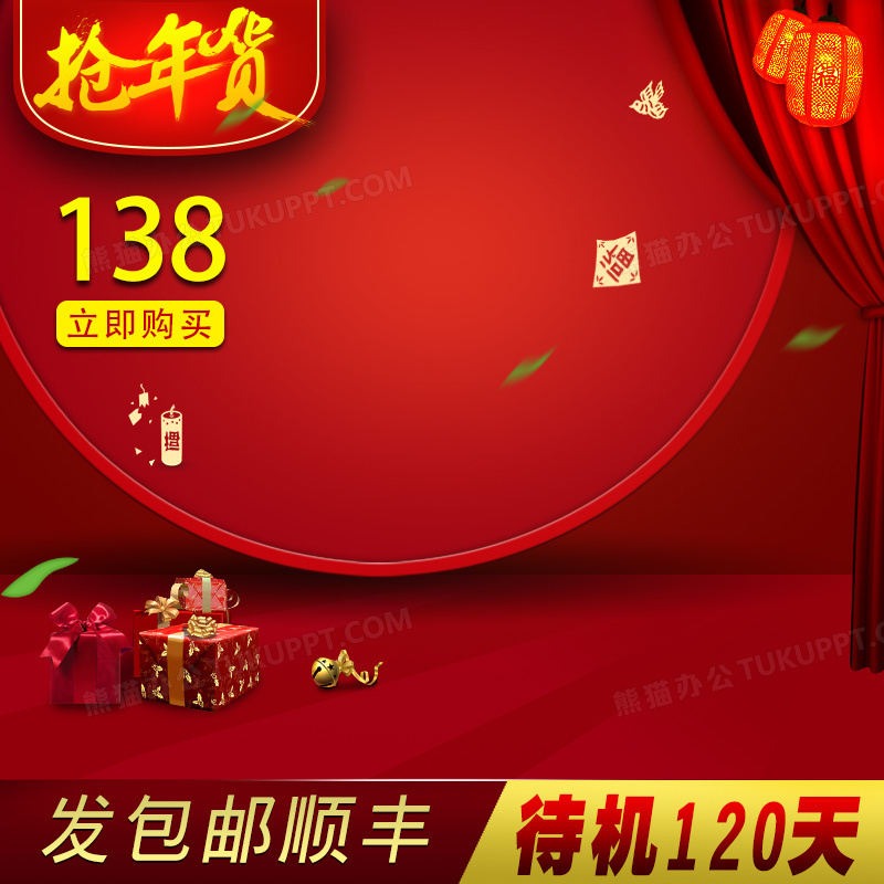 本作品内容为年货大红促销推广图背景图, 格式为 psd, 图片尺寸为800 x 800, 作品中背景图片无需修改, 源文件无水印,可以直接使用, 欢迎使用熊猫办公。 如认为平台内容涉嫌侵权,可通过邮件:tousu@tukuppt.com提出书面通知,我们将及时处理。