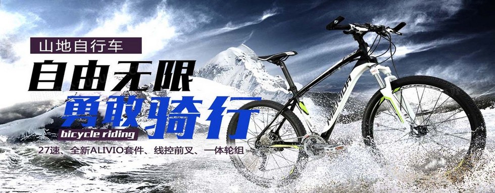 本作品内容为山地自行车, 格式为 psd, 图片尺寸为1920 x 750, 作品中背景图片无需修改, 源文件无水印,可以直接使用, 欢迎使用熊猫办公。 如认为平台内容涉嫌侵权,可通过邮件:tousu@tukuppt.com提出书面通知,我们将及时处理。