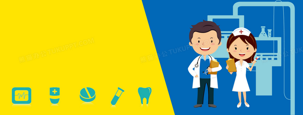 本作品内容为卡通医生医疗banner背景海报, 格式为 psd, 图片尺寸为1920 x 728, 作品中背景图片无需修改, 源文件无水印,可以直接使用, 欢迎使用熊猫办公。 如认为平台内容涉嫌侵权,可通过邮件:tousu@tukuppt.com提出书面通知,我们将及时处理。