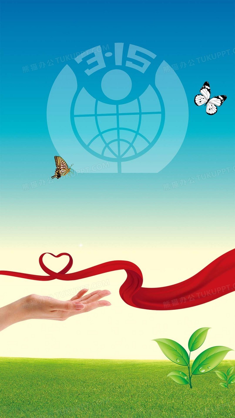 本作品内容为爱心红飘带公益草地315权益日H5背景, 格式为 psd, 图片尺寸为1080 x 1920, 作品中背景图片无需修改, 源文件无水印,可以直接使用, 欢迎使用熊猫办公。 如认为平台内容涉嫌侵权,可通过邮件:tousu@tukuppt.com提出书面通知,我们将及时处理。