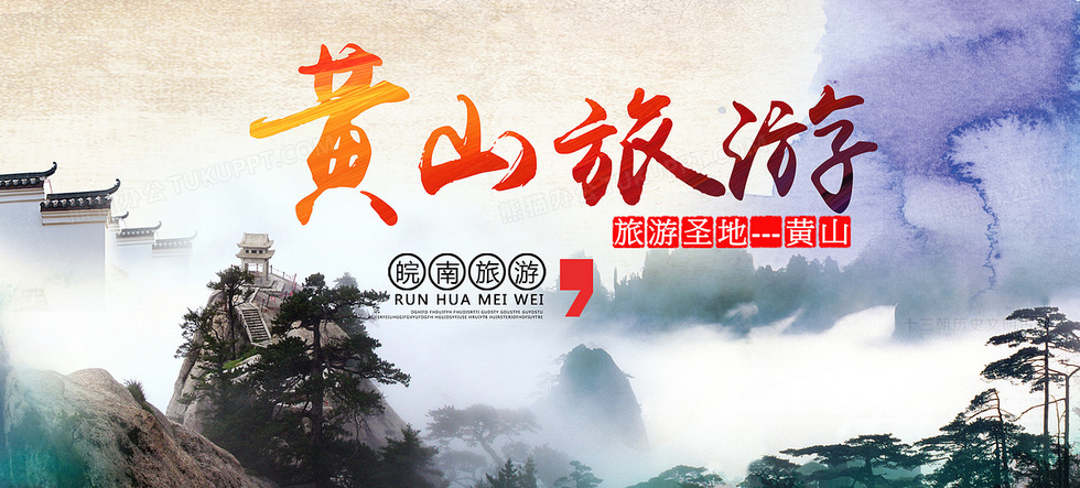 本作品内容为中国风黄山旅游山峰海报背景, 格式为 psd, 图片尺寸为5048 x 2283, 作品中背景图片无需修改, 源文件无水印,可以直接使用, 欢迎使用熊猫办公。 如认为平台内容涉嫌侵权,可通过邮件:tousu@tukuppt.com提出书面通知,我们将及时处理。