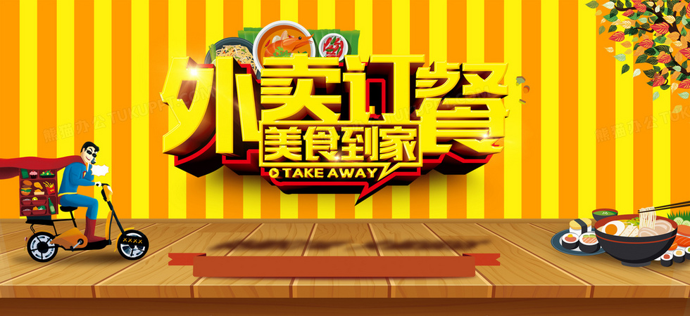 本作品内容为外卖订购banner背景, 格式为 psd, 图片尺寸为1920 x 881, 作品中背景图片无需修改, 源文件无水印,可以直接使用, 欢迎使用熊猫办公。 如认为平台内容涉嫌侵权,可通过邮件:tousu@tukuppt.com提出书面通知,我们将及时处理。