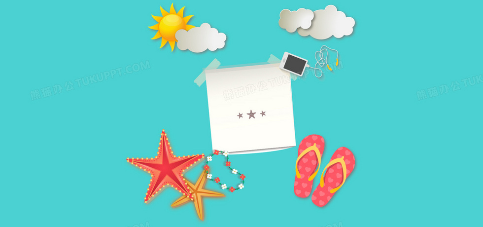 本作品内容为卡通清新夏日海滩背景banner, 格式为 psd, 图片尺寸为1920 x 900, 作品中背景图片无需修改, 源文件无水印,可以直接使用, 欢迎使用熊猫办公。 如认为平台内容涉嫌侵权,可通过邮件:tousu@tukuppt.com提出书面通知,我们将及时处理。