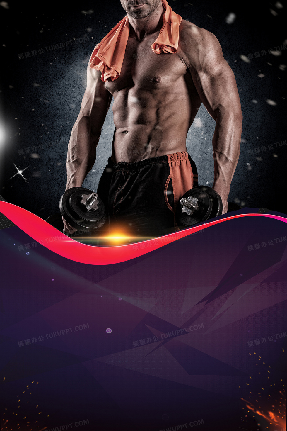 本作品内容为健身海报背景, 格式为 psd, 图片尺寸为3543 x 5315, 作品中背景图片无需修改, 源文件无水印,可以直接使用, 欢迎使用熊猫办公。 如认为平台内容涉嫌侵权,可通过邮件:tousu@tukuppt.com提出书面通知,我们将及时处理。