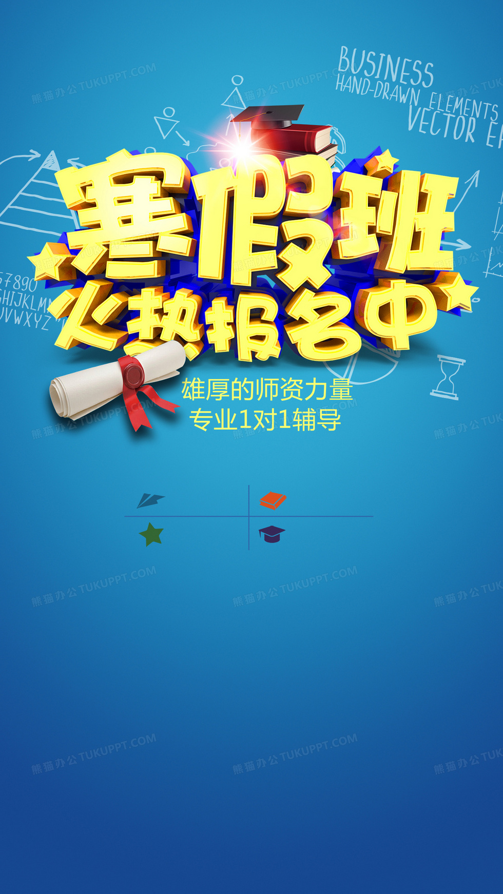 本作品内容为寒假班招生H5背景psd源文件下载, 格式为 psd, 图片尺寸为1242 x 2208, 作品中背景图片无需修改, 源文件无水印,可以直接使用, 欢迎使用熊猫办公。 如认为平台内容涉嫌侵权,可通过邮件:tousu@tukuppt.com提出书面通知,我们将及时处理。