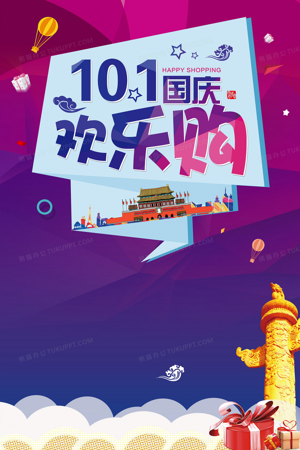 本作品内容为国庆促销狂欢海报背景, 格式为 jpg, 图片尺寸为3500 x 5251, 作品中背景图片无需修改, 源文件无水印,可以直接使用, 欢迎使用熊猫办公。 如认为平台内容涉嫌侵权,可通过邮件:tousu@tukuppt.com提出书面通知,我们将及时处理。