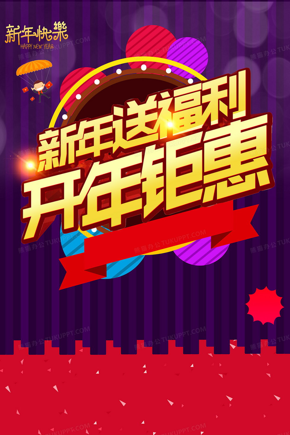 本作品内容为新年开年钜惠海报背景, 格式为 psd, 图片尺寸为7087 x 10630, 作品中背景图片无需修改, 源文件无水印,可以直接使用, 欢迎使用熊猫办公。 如认为平台内容涉嫌侵权,可通过邮件:tousu@tukuppt.com提出书面通知,我们将及时处理。