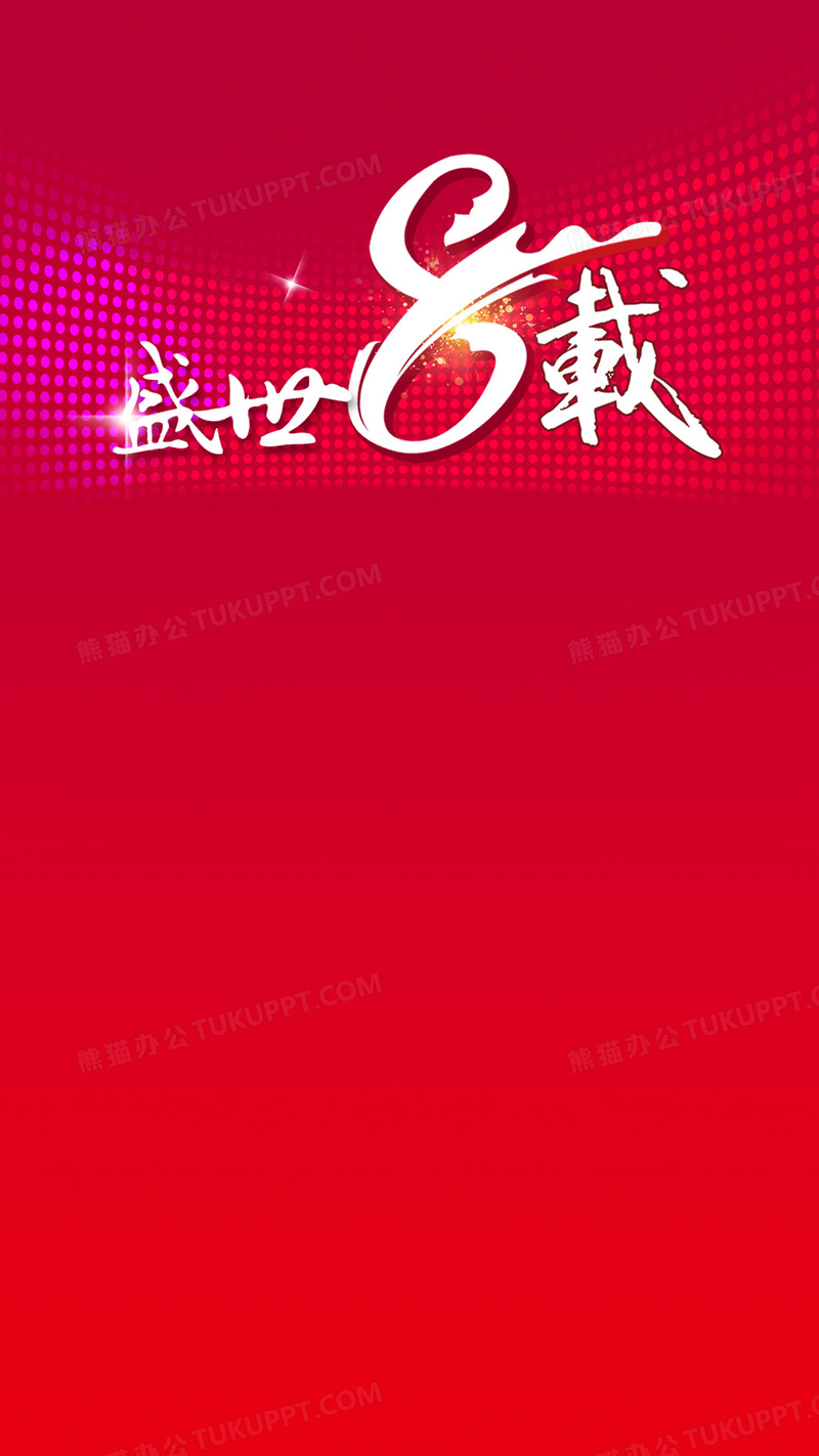本作品内容为红色盛世8载H5背景, 格式为 psd, 图片尺寸为1080 x 1920, 作品中背景图片无需修改, 源文件无水印,可以直接使用, 欢迎使用熊猫办公。 如认为平台内容涉嫌侵权,可通过邮件:tousu@tukuppt.com提出书面通知,我们将及时处理。
