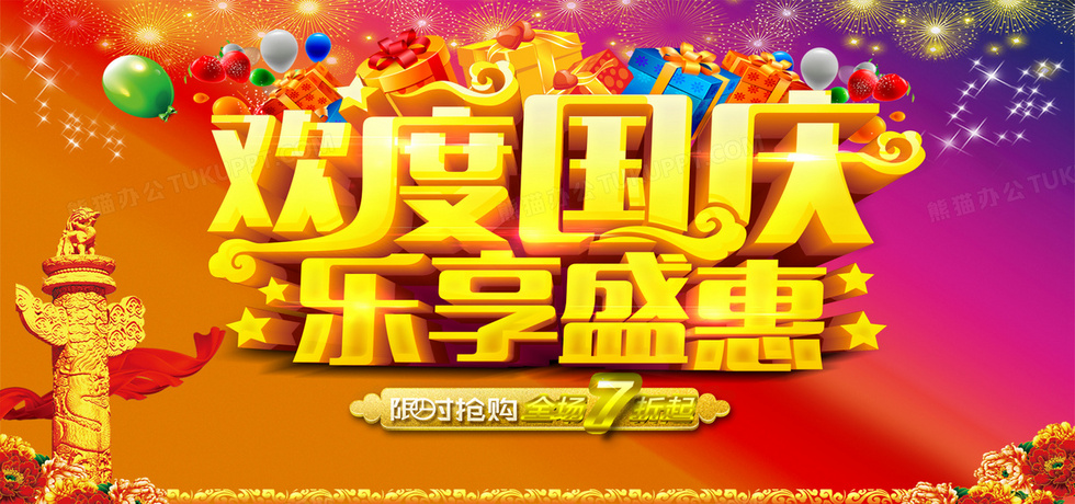 本作品内容为国庆节节海报设计素材, 格式为 psd, 图片尺寸为1920 x 900, 作品中背景图片无需修改, 源文件无水印,可以直接使用, 欢迎使用熊猫办公。 如认为平台内容涉嫌侵权,可通过邮件:tousu@tukuppt.com提出书面通知,我们将及时处理。