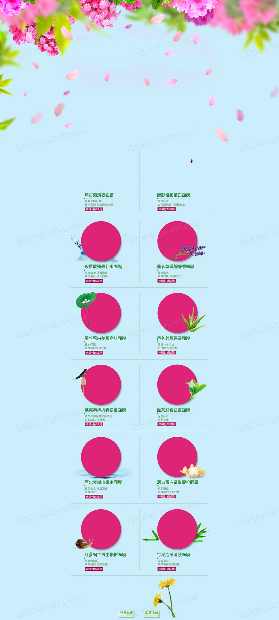 本作品内容为化妆品首页背景, 格式为 psd, 图片尺寸为1920 x 4255, 作品中背景图片无需修改, 源文件无水印,可以直接使用, 欢迎使用熊猫办公。 如认为平台内容涉嫌侵权,可通过邮件:tousu@tukuppt.com提出书面通知,我们将及时处理。